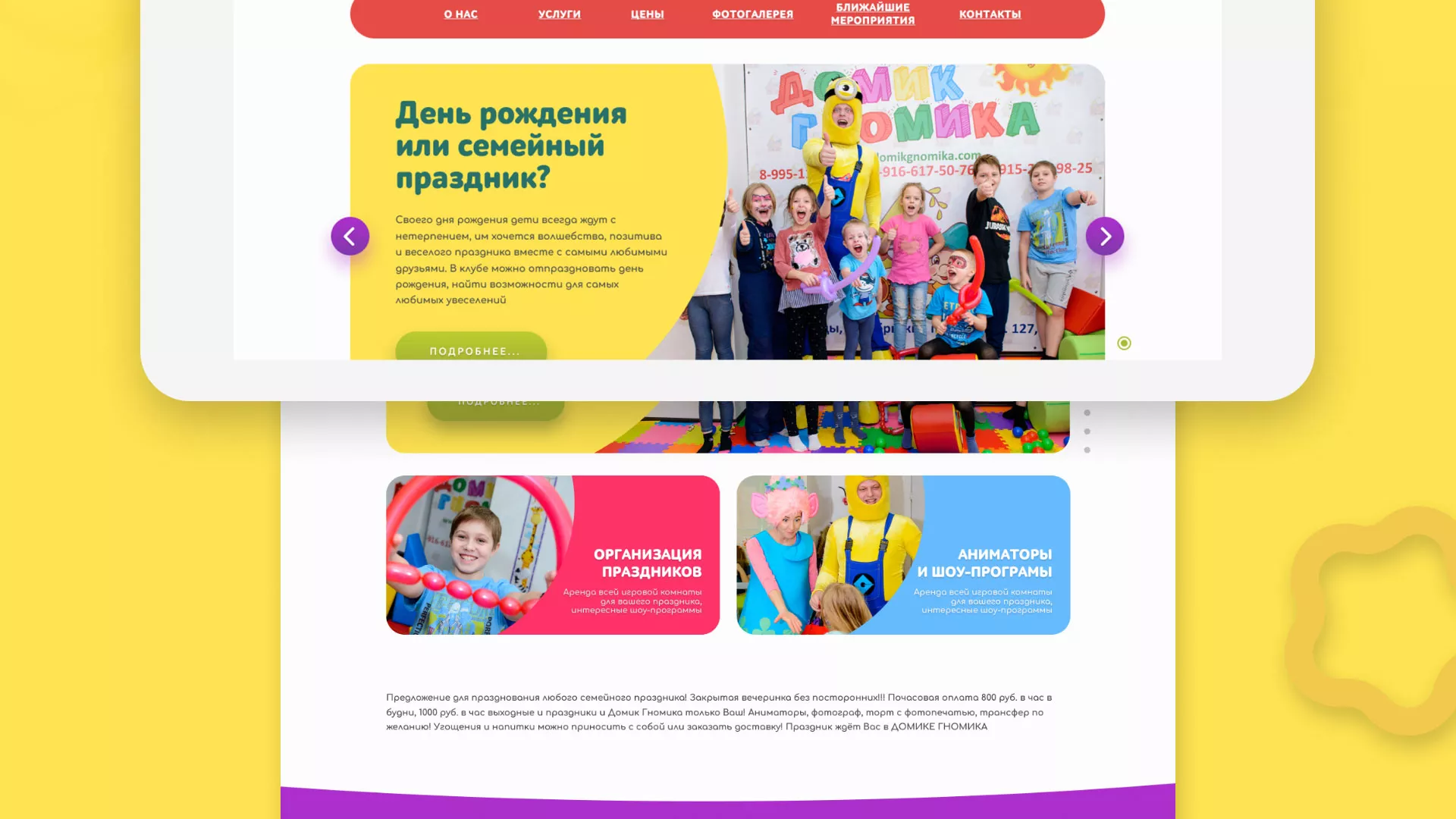 — Поэтому мы создали уютное место, где большие семьи смогут организовать настоящий детский праздник в своём тесном кругу, и не волноваться о безопасности непосед.
